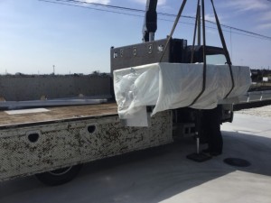 当社からは3tのユニック車で引取りへ伺い、撤去済みの廃棄物を外までハンドリフトで搬出してきて、荷台まではユニック作業で積み込みを致しました。作業はスムーズに進み、30分程度で積み込みまで終了いたしました。