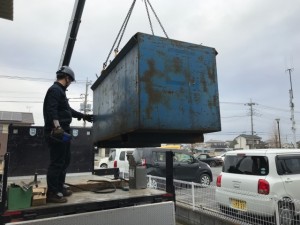 引き取り時は、3tユニック車で伺いました。事前に設置させて頂いた1.5立米鉄箱をユニックで積み込んでスムーズに終了致しました。今回中身の液体が残っていた物に関しては、後日廃油として処理致しました。