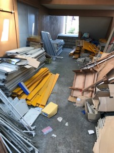 お客様先はビルになっていて、1階が店舗となっていました。その店舗が閉店するということで、中の片付けをしなくてはいけなくなったそうです。商品類はどうにかするということでしたが、店舗什器類の金属スクラップ類、他木製の棚や販促のためのポップ類などのプラスチック関係などの混合類が店舗裏に少しずつ片付けたのか山になっておいてありました。当社から8tのアームロール車、16立米のコンテナを背負って引き取りに伺い、幸いコンテナは下ろせましたので、作業員数名で積み込み作業を行い、金属を出荷した折り返しで廃棄物の積込を行いました。金属出荷している間に廃棄物を片付けながらすぐに積込できるように準備を進めたので、半日で作業も終了しました。金属スクラップは買取させていただき、作業費より差し引かせて頂きました。