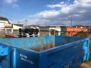 引き取り時、当社の4tアームロール車に8立米の空コンテナを背負い伺いました。その8立米コンテナに積み込みを行いました。