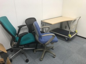 お問い合わせをいただきまして、事務所内で使用していたイスや机類を処分したいというご相談をいただきました。物量の確認のため、一度下見をさせていただきました。まだ事務所内で使用しているものもあったりして、全て確認はさせていただきましたが、まだ増えるかもしれないということでした。椅子や机の買い替えを検討していて、買うのはいいが、今使っているものの処分をどうしたらいいかと悩んでいたそうです。引き取りのときは全て外に出しておいていただき、トラックが近くまで入れる場所に置いていただいて、当社の4tアームロール車で引き取りに行き、コンテナをおろして積み込みを行いました。お客様のご協力もあって作業はすぐに終わりました。