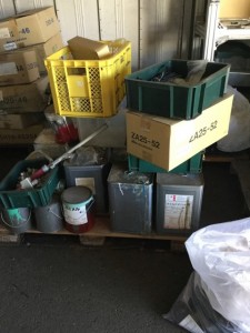 こちらのお客様は金属加工をしているお客様で、別の業者で金属スクラップを引き取りしてくれる業者さんはいるようですが、廃棄物は少量なら一緒に引き取ってくれていたそうです。ですが、液体系は少しでも引き取りしてもらえず、また使うだろうと使いかけのものはとっておいたそうです。ですが、そのまま使わずに溜めてしまって、2パレット分くらいになってしまったそうです。中身が残ったままではスクラップ業者さんも引き取ってもらえないとのことで、産業廃棄物で処理しようとインターネット検索をして、お問い合わせをいただきました。下見に伺いましたら、物は廃塗料類やシンナー関係のものでした。引火性廃油と通常廃油の契約を締結して、引き取りをさせていただきました。あまり溜めずに定期的に処理するようにするとのことでした。