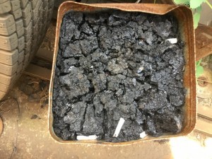 引き取りをさせて頂いたのは汚泥です。物は金属部品を削って排出される研磨くずです。数量は一斗缶約30個です。