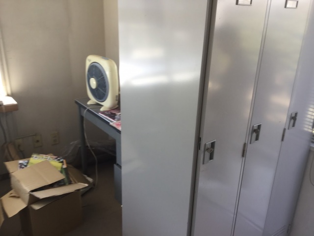 こちらのお客様は金属加工をしているお客様で廃棄物類やスクラップ類をいつもお引き取りさせていただいているお客様で、今回は昔使っていた社員、パートさんの休憩所が物置き状態になっていて一旦すべて片付けたいので必要なものは事前に出しておくので、残った不要なものは全て処理してほしいという相談でした。中を確認しましたら、テーブルやいす、ソファーなどの家具類から更衣室で使用するようなロッカーが複数台、電子レンジや冷蔵庫などの家電もありました。4t車2台と搬出の作業要員で合計4名で作業を行って半日で無事終了しました。廃家電リサイクル対象の冷蔵庫は事前にリサイクル料金は支払ってくれていたのでそのままお引き取りもできました。搬出しながら混合廃棄物と金属スクラップと分別しながら作業をおこないました。