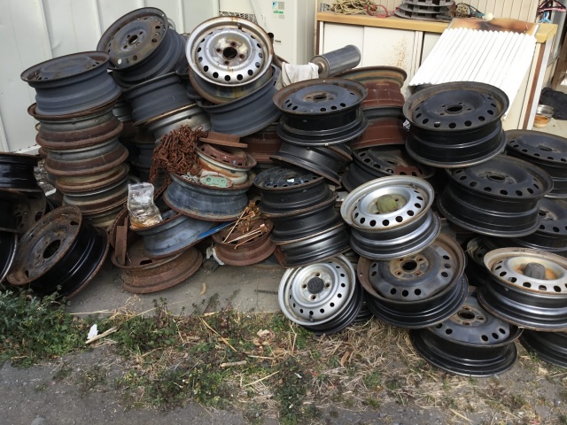 こちらのお客様は今までガソリンスタンドを営業していたそうですが、少し前に店を閉めたということで、スタンド内の片付けをしているとのことでした。自分たちで片付けられるものは市の施設などに持って行って処理をしたそうですが、金属類については運べないものが多く、業者にトラックで来てもらって一気に持って行ってもらおうと探していたそうです。下見へ伺いましたら、元々オイルが入っていた空のドラム缶や鉄のホイール、アルミホイールなどがスタンドの裏の方においてありました。引き取り時は事前にお客様が広いところまで出しておいていただいて、一緒に作業もして頂いたので時間もかからずに終了することができました。きれいに片付いたとお喜びのご様子でした。