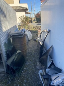 引き取りを実施方法は当社の4tアームロール車で回収をする方法です。現場は、手作業で積み込みを行い、30分ほどで終わりました。お客様にも手伝って頂きまして、作業がスムーズに行えました。又、積込むの仕方にも様々な方法があります。