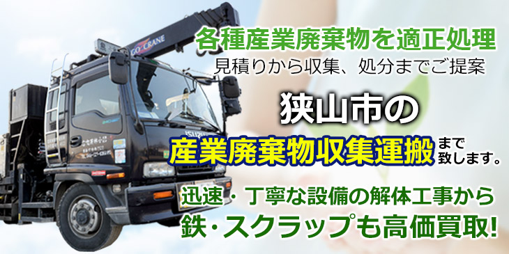 オフィス・工場にて発生する産業廃棄物の処理・運搬はぜひ当社にお任せください。埼玉県狭山市内の店舗、建設現場など多様なご要望に対応できる体制作りを行っています。今までの業者からお断りされてしまった内容もお気軽にご相談ください。また、鉄スクラップ買取や設備解体工事も受けたまわります。